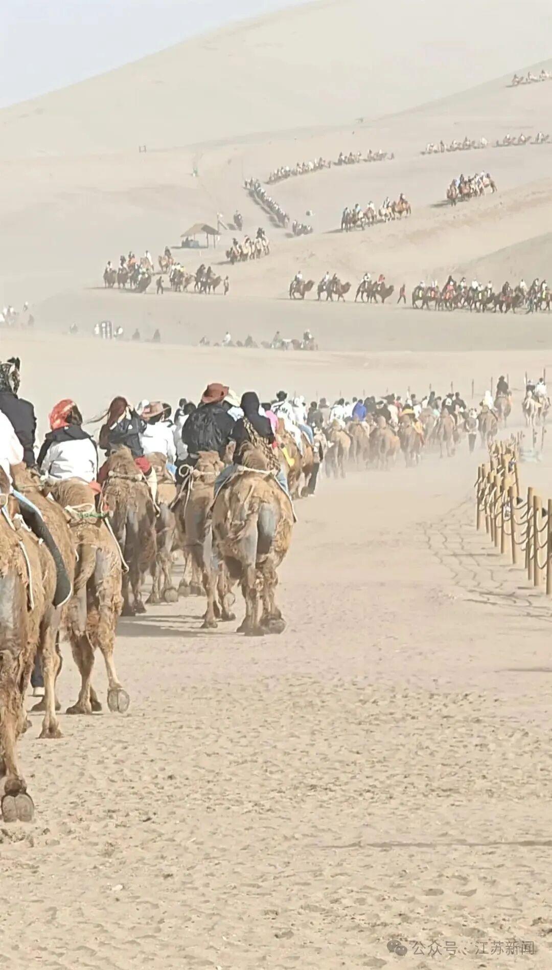 据景区工作人员介绍,骆驼骑行时长约40分钟,5人一队,有工作人员指引带队,下午高峰期时骑骆驼会排队,大概半个小时左右。