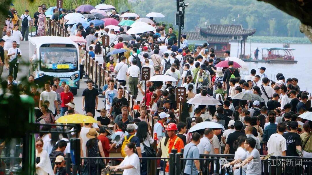 10月2日,杭州西湖景区迎来国庆长假旅游高峰,断桥上的游客络绎不绝。据西湖景区客流量通报:2025年10月1日,西湖景区接待客流量44.63万人次,与2024年同比增长12.33%。