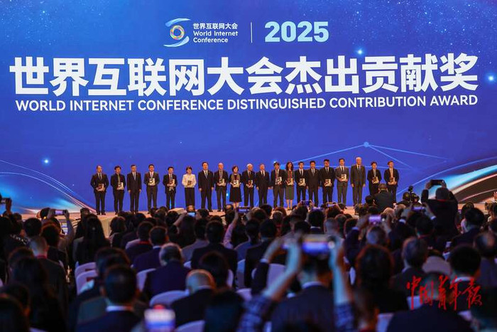 11月7日,浙江乌镇,在2025世界互联网大会乌镇峰会开幕式上,现场颁发了“世界互联网大会杰出贡献奖”。其中宇树科技、蚂蚁密算、理想汽车等共同获得成长潜力类奖项。陈思阳/摄